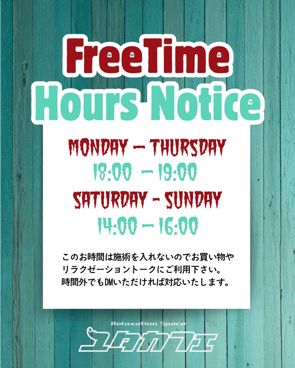 リラクゼーション目当てのお客様、セール目当てのお客様がいらしゃると思うので、下記のような時間割営業にいたします。