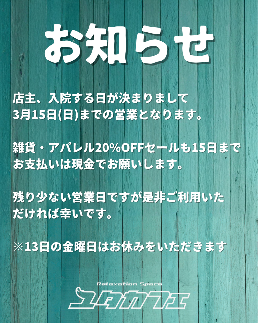 術後どれぐらいで営業再開できるか分からないので、今のうちにユタカフェをご利用下さい。